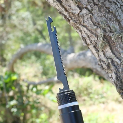 Spadehodet i stål er utstyrt med tau-kutter og sag på én side, og kløyver/knivblad på den andre. I enden av håndtaket sitter en nødhammer for glassknusing, ideell ved ulykker. Inne i håndtakets forlengelser finner du flere integrerte verktøy, blant annet kniv, skrutrekkere og tennstål – alt lett tilgjengelig når du trenger det mest.