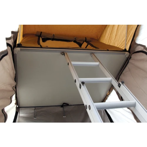 TJM taktelt og markiser er klare i løpet av minutter, slik at du kan slappe av og nyte naturen. Det er mye å elske ved campingplasser hvor utsikten er bedre og mindre sand blir transportert inn i teltet ditt. For ikke å nevne ekstra sikkerhet, og med rike dyreliv kan dette gi en mer avslappende natts søvn. Produsert av langvarig, pustende stoff i polyester og bomull, er TJM YULARA - takteltet solid og vanntett, og passer pent på taket på din bil. Tilgangen er enkel, med den medfølgende uttrekkbare stigen i aluminium. Du trenger ikke å bekymre deg for å blåse opp luftmadrasser heller, da en 65 mm skumgummi madrass som er behagelig og leveres med tett, avtagbart overtrekk. YULARA har fullt skjermede vinduer og dører og en uttrekkbar " oververanda". For å få enda mer plass, legg til et valgfritt TJM fortelt som enkelt festes med glidelås..