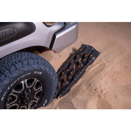 The special polyolefin material blend means TRED Pros can handle high levels of flex, are highly durable and wear resistant. The mix of elasticity and tough rigid design in the main body means that your TRED Pro's maintain a high level of pressure on your tyre, to provide ultimate traction whilst still being able to take the flex of being under the vehicles weight on unstable ground.