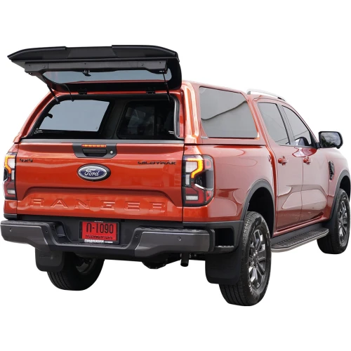 AEROKLAS STYLISH plantopp til Ford Ranger Double Cab (2023–) er en moderne, lett og svært funksjonell pickup-topp, utviklet for deg som ønsker maksimal nyttelast, høy kvalitet og OEM-standard. Toppen er produsert i 2-lags ABS-plast, er 100 % resirkulerbar og betydelig lettere enn topper i glassfiber, aluminium og stål – noe som gir deg bedre lastekapasitet og kjøreegenskaper.