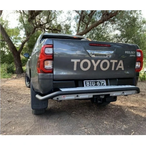 • Vehicle specific design for the wide body Toyota Hilux 2020 SR5 on with rear parking sensors and OE towbar