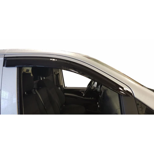 Vindavvisere til Mercedes Vito (W447) 2015– med rask og sikker montering via original 3M-teip. Forbedrer ventilasjonen i regn og vind, reduserer dugg og vindstøy, og gir bilen et mer moderne og funksjonelt uttrykk. Laget i slitesterkt og UV-motstandig akrylmateriale.